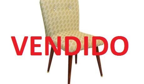 DESCRIÇÃO: Cadeira Pé Palito ( Déc 50 ) Revestida em Couríssimo Caramelo e Botões em Madeira ( Peça ÚNICA) DIMENSÕES: 0,44 Larg / 0,50 Prof / 0,83 Alt. Preço: R$ 580,00