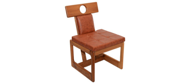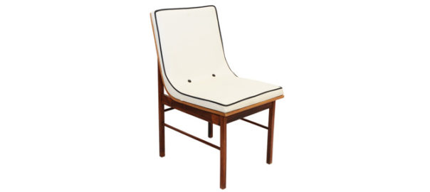 CADEIRA COM BASE EM JACARANDÁ EM COURO BRANCO / DÉCADA DE 60 DIMENSÕES: 0,44 LARG / 0,55 PROF / 0,84 ALTURA PREÇO: 990,00