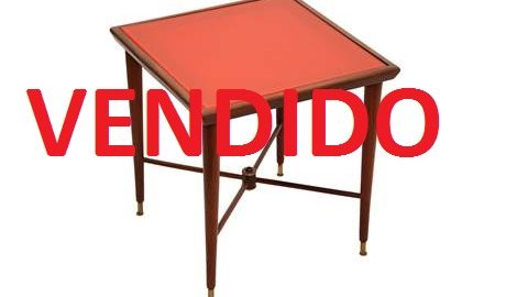 MESINHA DE CANTO PÉ PALITO COM TAMPÃO EM VIDRO VERMELHO / DÉCADA 50 DIMENSÕES 0,44 LARG/ 0,44 PROF / 0,47 ALTURA PREÇO: R$ 560,00
