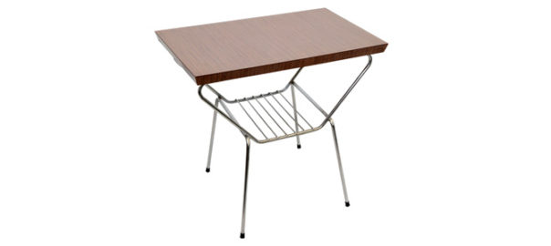 MESINHA ANTIGA PARA TV EM FERRO CROMADO COM TAMPÃO EM FORMICA ORIGINAL / DÉCADA 60 DIMENSÕES: 0,70 COMP / 0,43 PROF / 0,64 ALTURA PREÇO: 1.300,00